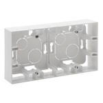 Aufputzgehäuse, 2-fachAbmessungen (L x B x T): 159,5 x 88,5 x 40 mm, geliefert mit Schrauben zur Montage des Einsatzes. Farbe: Ultraweiß
