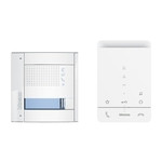 Audio-Set mit Türstation Weiß und hörerloser Hausstation CLASSE 100 A16E; Das Flex‘ONE-Set beinhaltet: • Eine hörerlose Audiohausstation Classe 100 A16E in der Farbe Weiß (Best.Nr. 344282) mit 5 Funktionstasten (Gespräch annehmen, Gespräch beenden, Tür öffnen, Türstation aktivieren und Licht schalten) sowie 4 Zusatztasten für weitere Funktionen (Intern Sprechen, Torsteuerung, Schaltbefehle, etc.). • Eine modulare Unterputz-Türstation SFERA Allwhite aus Aluminium mit der Schutzart IP 54 und einer Schlagfestigkeit von IK 08. Wird mit 2 Abdeckungen geliefert (1 bzw. 2 Ruftasten), um das Set auf ein Zweifamilienhaus erweitern zu können. • Spannungsversorgung Best.Nr. 346050 inkl. Konfigurator-Set Best.Nr. 306064 zur Erweiterung auf ein Zweifamilienhaus (Hinweis: die 2. Hausstation muss separat bestellt werden).