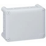 Legrand Abzweigdose Plexo. Rechteckig 155 x 110 x 74 mm (H x B x T), Schutzart IP 55 – IK 07, mit Vorprägung für metrische Leitungseinführung, Deckel mit 1/4-Drehung Schnellverschluss, Lichtgrau RAL 7035, selbstverlöschend 750°C, beschriftbarer Deckel.