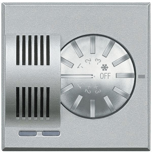 Raumthermostat mit Stellrad zum manuellen Verändern der Solltemperatur um ±3 °C, Frostschutz und Aus, Messbereich 3–40 °C, Kontroll-LEDs für Betrieb und Heizen/Kühlen, Farbe: Aluminium