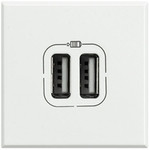USB-Ladesteckdose 2-fach für das Schalterprogramm Axolute mit Ausgangsspannung 5 VDC mit max. Ladestrom von 1500 mA für ein Gerät oder 750 mA pro Ausgang bei gleichzeitigem Laden von 2 Geräten - Spannungsversorgung 230 VAC – 2 Module, Farbe: Weiß
