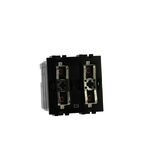 UP-Aktor mit 2 Schließern und frontseitiger lokaler Betätigung Zur Verwendung als Rollladenaktor (verriegelt) oder zum Schalten von 2 unabhängigen Lasten. Kontaktbelastbarkeit 6 A ohmsch, 2 A induktiv, 1 A LEDs und 460 W Motorantrieb, zu komplettieren mit 1- oder 2-moduligen Wippen.