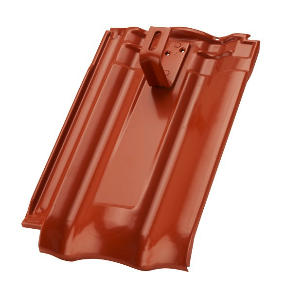 Aufdachmodulhalter auf Metalldachplatte genietet, System Forma Erlus, komplett mit Lattenschiene 400 mm, inklusive Bohrschrauben, zum Anschrauben an die Dachkonstruktion, ziegelrot