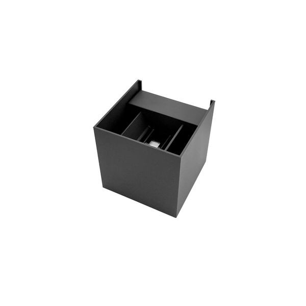 LED-Wandleuchte, modernes Design, Ausstrahlungswinkel einzeln oben und unten von 3°-87° einstellbar, Gehäuse in Anthrazit RAL7016, Lichtfarbe 3000K Warmweiß, Einsatzmöglichkeit: Innen und Außen, Leistung: 6W, Lichtstrom: 480lm, nicht dimmbar, Schutzart: IP65 IK06, Anschlussleitung: AC200-265V 50Hz, Abmessung: 100x100x100mm, Gehäusematerial: Aluminium, Lebensdauer: 30000 Std.
