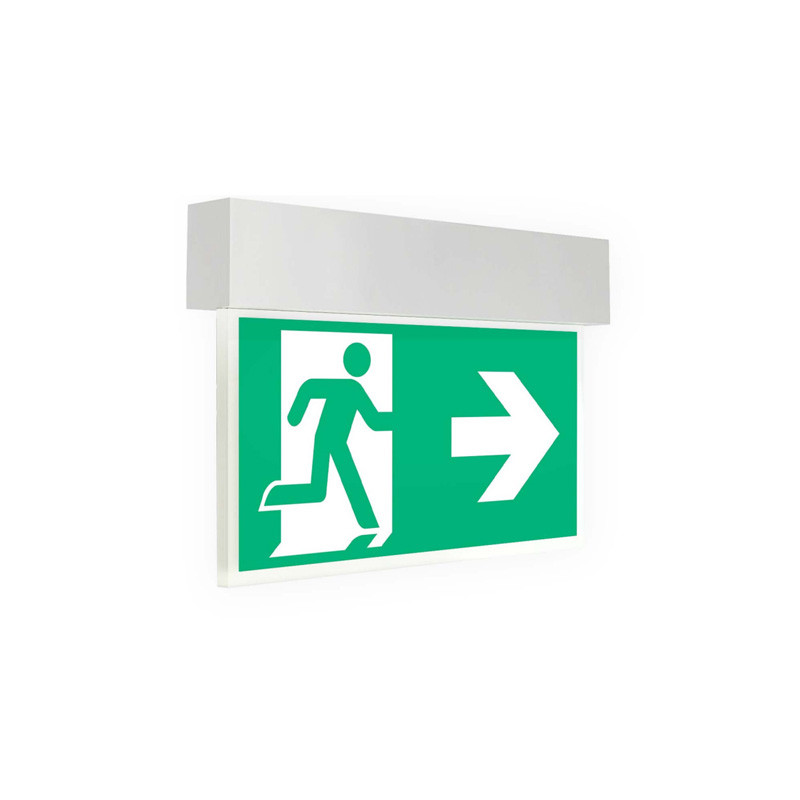 LED-Rettungszeichenleuchte, Erkennungsweite 24 Meter, 3 Stunden NiMh 2,4V 1800AH (Einzelbatterieleuchte), mit Test-Funktionstaste, 4 Piktogramme ???? wechselbar (im Lieferumfang enthalten)), Gemäß DIN EN60598-1, DIN EN60598-2-22 und DIN EN1838. ISO7010, Zeitsparende Universalmontage an Wand oder Decke, inklusive 90° Metallbügel für Wandmontage,
