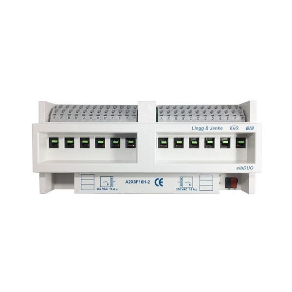 KNX standard Schaltaktor 2x6-fach Handbedienung 2. Generation 12 TE Schaltleistung 16A 250 VAC C-Last 200µF