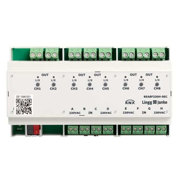 KNX eco+ Binär Ein-/Ausgang 8-fach Signaleingang 230V AC/DC Handbedienung 9 TE Schaltleistung 16A 250 VAC C-Last 200µF