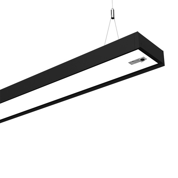 Dimmbare Pendelleuchte in rechteckigem Design für direkt-indirekte Arbeitsplatzbeleuchtung, hohe Wartungsfreundlichkeit, keine UV- und Wärmestrahlung, Gehäuse aus extrudiertem Aluminium, Enddeckel aus Aluminiumdruckguss und Stahlblech, Diffusor für optimal entblendeten Direktlichtanteil aus mikroprismatischem Acrylglas mit integrierter Mattfolie, Diffusor für Indirektlichtanteil aus transparentem PMMA-Recyclat, Organic Response Technologie: PIR-Sensor mit Präsenz- und Tageslichtsteuerung (alle Leuchten arbeiten als Master/Slave mit IR-Kommunikation), höhenverstellbare Y-Drahtseilabhängung 2-fach (Länge: 1500 mm), Anschlussleitung transparent (5-adrig, konfektioniert), Deckendose mit Einspeisung in Leuchtenfarbe aus ABS, Betriebsgerät (LED-Konverter) integriert (mit DALI Dimmung)dimmbare Pendelleuchte in rechteckigem Design für direkt-indirekte Arbeitsplatzbeleuchtung, hohe Wartungsfreundlichkeit, keine UV- und Wärmestrahlung, Gehäuse aus extrudiertem Aluminium, Enddeckel aus Aluminiumdruckguss und Stahlblech, Diffusor für optimal entblendeten Direktlichtanteil aus mikroprismatischem Acrylglas mit integrierter Mattfolie, Diffusor für Indirektlichtanteil aus transparentem PMMA-Recyclat, Organic Response Technologie: PIR-Sensor mit Präsenz- und Tageslichtsteuerung (alle Leuchten arbeiten als Master/Slave mit IR-Kommunikation), höhenverstellbare Y-Drahtseilabhängung 2-fach (Länge: 1500 mm), Anschlussleitung transparent (5-adrig, konfektioniert), Deckendose mit Einspeisung in Leuchtenfarbe aus ABS, Betriebsgerät (LED-Konverter) integriert (mit DALI Dimmung)
