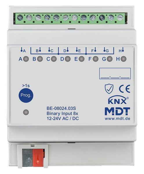 | Kurzbeschreibung | KNX Binäreingang 8-fach, 4TE REG, Ausführung 24 V AC/DC, Secure |