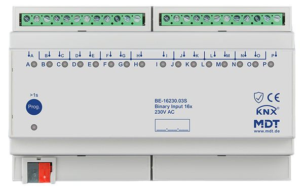 | Kurzbeschreibung | KNX Binäreingang 16-fach, 8TE REG, Ausführung 230 V AC, Secure |