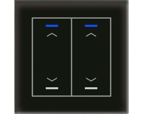 KNX Glastaster II Light 2-fach, RGBW, Schwarz, Jalousie, Secure. Ausführung Auf/Ab Symbol mit 2 Tastenpaaren / 4 Sensorflächen. KNX Data Secure, integrierter Busankoppler. Umfangreiche Applikation. Die Tasten sind als Tastenpaar oder Einzeltasten frei einstellbar. Intelligentes Ein-Tasten-Dimmen. Erweiterte Funktion "Werte senden". Ein- und Zweitasterbetrieb für Schalten, Dimmen, Jalousie, Werte. Umschalten von bis zu vier Werten oder Szenen. Kurzer/Langer Tastendruck mit 2 Objekten. Mehrfach-Tippfunktion sendet bis zu 4 Werte auf gleiche oder verschiedene Objekte. Innovative Gruppensteuerung mit langem/extra langem Tastendruck. Patschfunktion mit zusätzlichem Schaltobjekt. Vier RGBW Status-LEDs. LED Helligkeit über Tag/Nacht- oder Helligkeit-Objekt steuerbar. 4 Logikblöcke. Einbau in Schalterdose mit mitgeliefertem Tragring. Abmessungen (H x B): 92 x 92 mm. 3 Jahre Produktgarantie.