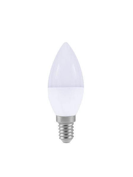 LED-Kerzenlampe AC/DC (500 Lumen) E14. Universal-LED-Lichtquelle für AC/DC 170-250V, geeignet als Notlichtlampe. Blendarme mattierte Abdeckung, warmweiße Lichtfarbe.