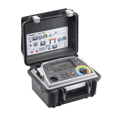 DLRO-10HDX-NLS-LG1-P2 Digital Mikroohmmeter;10A, Batterie & Netzanschluss, Hi/Lo Ausgang, Speicherfunkion, USB Download, Sprachpaket LG1 (Englisch, Französisch, Deutsch und Niederländisch), EU (Schuko) Netzteil, inklusive Connect Duplex Handspitzen 1,5m Messleitung
