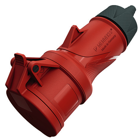 CEE Kupplung PowerTOP Xtra G 16A 5p 6h 400V IP54 X-Contact ergonomisches Gehaeuse gummierte Verschraubung Schraubtechnik hochwaermebestaendiger Kontakttraeger vernickelte Kontakte mit Schutztuelle