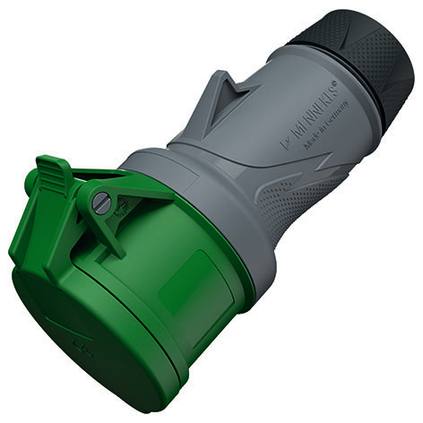 CEE Kupplung PowerTOP Xtra R 16A 4p 2h >50-500V IP54 X-Contact ergonomisches Gehaeuse gummierte Verschraubung Schraubtechnik hochwaermebestaendiger Kontakttraeger, vernickelte Kontakte