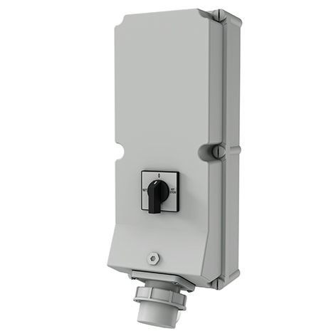 MENNEKES Steckdosen-Kombination als Notstromeinspeisung anschlussfertig verdrahtet Schutzart IP 65 Gehaeuse: 1 Polycarbonat-Gehaeuse 460x180 mm (HxB) elektrograu RAL 7035 Bestueckung: 1 Aufbaugeraete-Stecker 16A 5p 1h >50V (IP 67) -inkl. Schutzkappe- 1 Netzumschalter 63A 4p (AC-3 18,5kW) (Frontschild: Netz-0-Notstrom) Leitungseinfuehrung/Anschlussmoeglichkeit: 2 M 40 oben (links offen, rechts verschlossen) 2 M 40 unten (verschlossen) Klemme fuer 1 Netzzuleitung bis 5 x 25 mm² (flexibel 16mm²) Klemme fuer 1 Abgangleitung bis 5 x 25 mm² (flexibel 16mm²) - Netzspannung 230\400V -