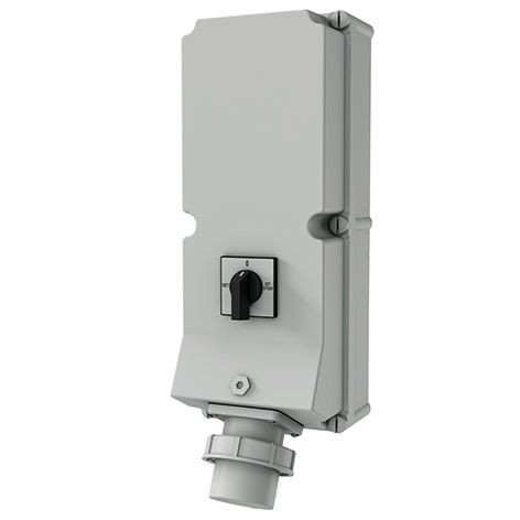 MENNEKES Steckdosen-Kombination als Notstromeinspeisung anschlussfertig verdrahtet Schutzart IP 65 Gehaeuse: 1 Polycarbonat-Gehaeuse 460x180 mm (HxB) elektrograu RAL 7035 Bestueckung: Pos. 01 1 Aufbaugeraete-Stecker 32A 5p 1h >50V (IP 67) -inkl. Schutzkappe- Pos.01 1 Netzumschalter 63A 4p (AC-3 18,5kW) (Frontschild: Netz-0-Notstrom) Leitungseinfuehrung/Anschlussmoeglichkeit: 2 M 40 oben (links offen, rechts verschlossen) 2 M 40 unten (verschlossen) Klemme fuer 1 Netzzuleitung bis 5 x 25 mm² (flexibel 16mm²) Klemme fuer 1 Abgangleitung bis 5 x 25 mm² (flexibel 16mm²) - Netzspannung 230\400V -