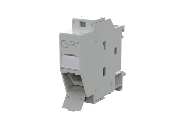 Anschlusseinheit zur Montage auf Tragschiene TH35 nach DIN EN 60715 in Elektroverteilern für Haus- und Industrieinstallation, neue METZ CONNECT FF Technologie, ohne Kunststofffolie verpackt (Easy Installation technology ? foil free) , bestückt mit UTP modul Cat.6, Kabelzugang 45° von oben, Steckrichtung 45° nach unten geneigt, Cat.6 Komponentenprüfung nach ISO/IEC 11801, DIN EN 50173-1, ANSI/TIA-568.2-D und IEC 60603-7-41, Einhaltung der Klasse E nach ISO/IEC 11801, DIN EN 50173-1, für 1GBit Ethernet (IEEE 802.3ab), Remote Powering (PoE, PoE plus, UPoE und 4PPoE) und HDBaseT, SAT-IP, AVoverIP geeignet, montagefreundlicher Anschluss der 2- bis 4-paarigen Datenleitung AWG 26/1 - 22/1 und Litzenleiter mit 7-drähtiger Cu-Litze AWG 26/7 - 22/7 an BTR 8fach IDC-Schneidklemmen, Kennzeichnung der Adernbelegung T568A und T568B, leichtes und schnelles Einlegen der Adernpaare in das UTP modul Ladestück, die Baubreite von 1TE ermöglicht den Einbau von bis zu 12 REGplus in Standard-Elektroverteiler, Das Modul ist durch eine Abdeckung vor direkter Berührung geschützt. Bei Montage in schutzisolierten Verteilern bleibt die Schutzklasse II somit bestehen. integrierte Staubschutzklappe (auch farbig erhältlich)