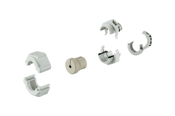 Teilbare Kabelverschraubung inkl. teilbarer Gegenmutter und geschlitztem Dichteinsatz.metrisches Anschlussgewinde EN 60423 , Klemmbereich: 4 bis 4,5 mm, Zubehör zu vorkonfektionierten Installationskabeln (OpDAT VIK), Schutzart IP 67, Werkstoff: PC, Varianten: 150811TM20-E, 150811TM25-E, 150811TM32-E