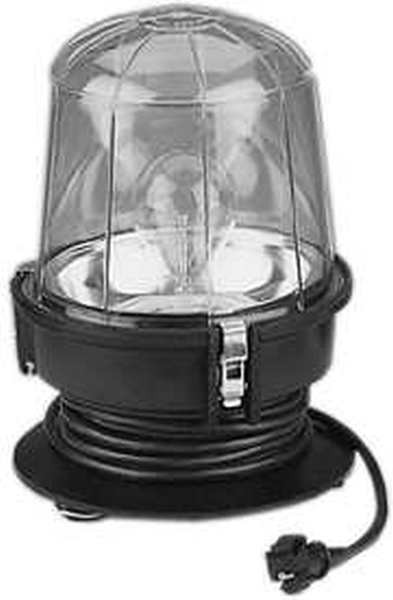 Für rauhe Betriebsart, Fassung E27 max. 200 W. Schutzklasse II, Gehäuse Spezialgummi, trommelartiger Leuchtenfuß mit Kabelaufwicklung und Aufhängehaken. Abdeckhaube Polycarbonat, Reflektor Aluminium eloxiert.