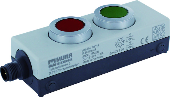 Resettaster mit 2 beleuchtbaren Tasten Je 1 Schließerkontakt im IP65 Gehäuse M12 Anschluss, 8-pol.