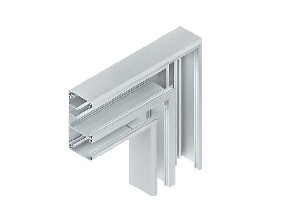 Doppelzügiges Gerätekanal-Vertikaleck 90°, mit zwei mittels Trennprofil getrennten, unterschiedlich großen Leitungszügen, der Potentialausgleich erfolgt über die Potentialausgleichsbrücke GPB 63-2, bitte gesondert bestellen. VDE zertifiziert! Abmessungen (ca. Maße) H x T : 170 x 80 mm Schenkellänge innen : 200 mm Deckelöffnungen : 78 mm + 38 mm (asymmetrisch) Abgang nach unten Teilung der Leitungszüge : 105 mm + 65 mm Oberfläche : pressblank Werkstoff : Aluminium
