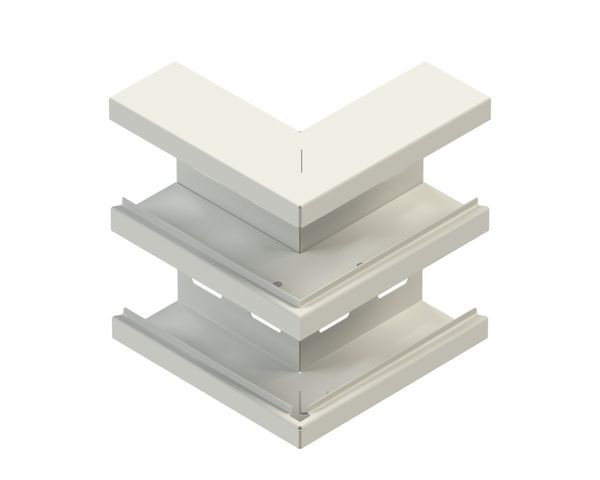 Außeneck 90°, doppelzügig symmetrisch, ohne Bodenlaschen für die Aufnahme der Trennstege jedoch mit rückwärtiger Befestigungslochung in beiden Schenkel, mit zwei, mittels nachträglich montierbarem, selbstkontaktierenden Trennprofil aus Aluminium, getrennten unterschiedlich großen Leitungszügen, Sichtflächen in RAL Farbton gemäß Herstellerkatalog elektrostatisch pulverbeschichtet, für den Potentialausgleich zwei Stoßstellenverbinder GSVA... je Stoßstelle, bitte gesondert bestellen. VDE zertifiziert! Verwendung für : Gerätekanal DKU 220-78T90 C Abmessungen (ca. Maße) Höhe H x Tiefe T : 220 x 90 mm Deckelöffnung : 78 mm und 78 mm Teilung der Leitungszüge : 110 mm und 110 mm Schenkellänge aussen : 200 mm zweireihige horizontale Rückenlochung : 7 x 33 mm mittiger Lochabstand : 62,5 mm Reihenabstand : 48 mm und 106 mm Farbton : [Kundenangabe erforderlich] RAL : [Kundenangabe erforderlich] Werkstoff : Stahl, bandverzinkt nach DIN EN 10346