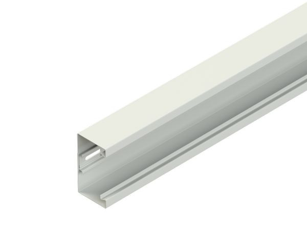 Gerätekanalunterteil, einzügig symmetrisch, mit Schlaufen und rückwärtiger Befestigungslochung zur flexiblen Montage auf Wand oder Wandkonsole, durchgehende Schlaufen zur Aufnahme von Trennprofilen im Rückenteil, Sichtflächen in RAL Farbton gemäß Herstellerkatalog elektrostatisch pulverbeschichtet, Gerätemontage im Leitungszug mit einrastbarer Gerätedose für Einbauprogramme mit 80 mm Abdeckrahmen und 60 mm Befestigungsspur, Geräteeinbau ohne Lochblenden, einschließlich 3 Kabelhalteklammern GKF 78 je 2 m Lieferlänge, für den Potentialausgleich zwei Stoßstellenverbinder GSVA... je Stoßstelle, bitte gesondert bestellen. VDE zertifiziert! Bei der Montage ist darauf zu achten, dass die Schlaufenöffnungen nach oben zeigen. Um einen festen Sitz des Deckels zu erzielen, müssen die Kabelhalteklammern GKF... im Abstand von 0,6 m - 0,7 m im Kanalunterteil eingesetzt werden. Abmessungen (ca. Maße) Höhe H x Tiefe T : 133 x 90 mm Deckelöffnung : 78 mm zweireihige horizontale Rückenlochung : 7 x 33 mm mittiger Lochabstand : 62,5 mm Reihenabstand : 75 mm vertikale Rückenlochung : 7 x 33 mm mittiger Lochabstand : 500 mm Schlaufenabstand RasterMaße : 250 mm Lieferlänge L : 2000 mm Nutzbarer Querschnitt : 10722 mm² Farbton : [Kundenangabe erforderlich] RAL : [Kundenangabe erforderlich] Werkstoff : Stahl, bandverzinkt nach DIN EN 10346