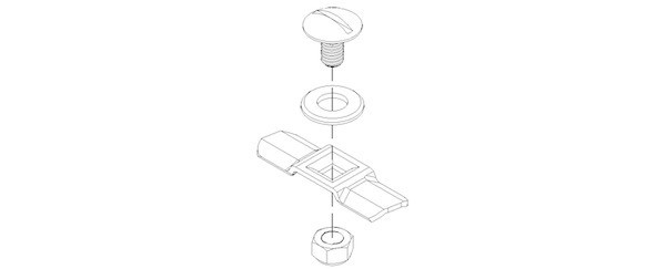 Doppel-Drehriegel, zum nachträglichen bzw. zusätzlichen Einbau in Formstückdeckel von Kabelrinnen sowie für Verteilerrinnendeckel, einschließlich Flachrundkopfschraube mit Schlitz FL 6X12-S E3 DIN 603 und Sicherungsmutter SMS 6 E3 DIN EN ISO 10511 aus Edelstahl, Werkstoff Nr. 1.4301, AISI 304. Eine Verwendung im Außenbereich, bedingt durch äußere Einflüsse wie z.B. Windlasten, ist nur mit einer zusätzlichen Sicherung (selbstschneidende Schrauben, Stahlband etc.) möglich. Bei der Befestigung ist darauf zu achten, dass ein Mindestabstand von = 50 mm zum Deckelanfang/-ende eingehalten werden muss. Des Weiteren ist zu beachten, dass der Schraubenkopfschlitz fluchtend mit der Befestigungslasche der Drehriegelplatte montiert wird. Dadurch wird eine spätere Kontrollmöglichkeit für das ordnungsgemäße Verschließen (Stellung des Schraubenkopfschlitzes) aller vorhandenen Drehriegel am Deckel gewährleistet. Verwendung für : Formstückdeckel von Kabelrinnen Verteilerrinnendeckel RDSV 50 E3 Lieferung : unmontiert und lose Werkstoff Riegel : Edelstahl, Werkstoff Nr. 1.4571, AISI 316Ti
