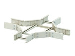 GFK-Kreuzung, pultrudiert, mit ungelochten Seitenholmen, jedoch mit Verbinderlochungen sowie mit nach oben offenen ungelochten Sprossen aus C-Profil mit ca. 17 mm Schlitzweite, zur Herstellung von horizontalen 90° Kreuzungen, anteilmäßiges Befestigungszubehör bitte gesondert bestellen, halogenfrei. Bei der Montage ist auf Folgendes zu achten: - Bei der Verbindung des Formstückes ist eine Montagedistanz von ca. 30 mm zu berücksichtigen. - Das Formstück muss an jedem Kabelleiterzugang mit Auslegern unterstützt werden. - Ist der Radius > 250 mm und/oder die Breite > 400 mm, sollte eine zusätzliche mittlere Unterstützung vorgesehen werden. - Um eine ordnungsgemäße Montage zu gewährleisten, müssen die Verbinder an jedem Kabelleiterzugang mit 4 FKM 6X20 E4 verschraubt sein. GFK-Kreuzung mit Verbindungslaschen (1) aus Edelstahl auf Anfrage. GFK-Kreuzung mit ungelochten Sprossen zur Realisierung der Radien R600 und R900 auf Anfrage. Die Stoßstellenverbinder ULGH 150/150 und ULIH 150 E4 sind nicht im Lieferumfang enthalten (bitte gesondert bestellen). Verwendung für : GFK-Kabelleiter UL 150... GFK-Kabelleiter ULL 150... Abmessungen (ca. Maße) H x B : 150 x 800 mm Länge in Hauptrichtung : 690 mm + B Länge in Abgangsrichtung : 345 mm + B Radius R : 250 mm Werkstoff : UP-GF (glasfaserverstärkter Polyester) Werkstoff Schrauben : Edelstahl, Werkstoff Nr. 1.4404, AISI 316L Farbton : kieselgrau RAL : 7032 (ähnlich)