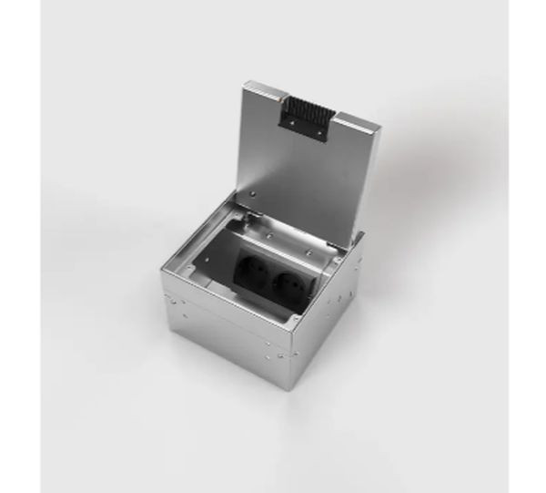 Die Aufnahmebox, der Rahmen und der Deckel bestehen aus Edelstahl. In den herausnehmbaren Klappdeckel können Bodenbeläge wie Teppich, Parkett, Laminat etc. mit einer Stärke von 15 mm eingesetzt werden. Der Deckel schließt auch bei gesteckten Standardsteckern in gerader oder abgewinkelter Form. Der Kabelauslass ist mit einer Bürste gegen groben Schmutz geschützt. Mit dem Bürstenauslass wählen Sie eine einfachere Handhabung der gesteckten Kabel und ein erleichtertes Öffnen des Deckels. Zudem bietet der Bürstenauslass einen weitgehenden Schutz vor Staub und das Ausfräsen einzelner Kabelauslässe entfällt.Installationshinweis gemäß § 13 NAV Bitte beachten Sie, dass Geräte mit einem Anschlusswert von 230V je nach Leistungswert mit einem Schutzkontaktstecker oder einem Festanschluss (ohne Stecker) ausgeliefert werden. Sollte das Gerät über einen Festanschluss verfügen, so ist ein Fachbetrieb mit der Installation zu beauftragen. Alle Geräte mit einem Anschlusswert ab 400V sind über einen geeigneten Starkstromanschluss zu betreiben und dürfen ausschließlich von einem Elektrofachmann angeschlossen werden. Bei Geräten deren Nennleistung mehr als 12KW beträgt, wird eine Zustimmung Ihres Netzbetreibers erforderlich. Hierzu wenden Sie sich bitte vor der Installation an den Netzbetreiber oder an ein in das Installateurverzeichnis des Netzbetreibers eingetragenes Installationsunternehmen. Ein solches Installationsunternehmen ist Ihnen dabei behilflich die erforderliche Zustimmung des jeweiligen Netzbetreibers einzuholen.