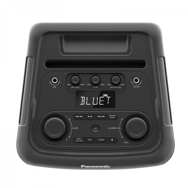 Der Panasonic SC-BMAX5E-K Lautsprecher ist ein tragbares, partytaugliches Soundsystem mit einer dynamischen Lichtshow, Gitarren- und Mikrofonanschlüssen für live und einer Gesamtleistung von 75 W für raumfüllenden Sound. Mit seinem praktischen Tragegriff und dem wiederaufladbaren Akku, der bis zu neun Stunden hält, ist er perfekt für Partys im Garten oder zum Chillen in geschlossenen Räumen geeignet. Mit dem SC-BMAX5E-K ist es ganz einfach, in Verbindung zu bleiben. Bluetooth Mit der 5.0-Schnittstelle können Sie Ihre Wiedergabelisten kabellos streamen, während die USB- und optischen Eingänge weitere Möglichkeiten bieten, Ihre Lieblingssongs abzuspielen oder das Gerät für ein sofortiges Audio-Upgrade an Ihren Fernseher anzuschließen. Haben Sie eine Gitarre oder ein Mikrofon? Schließen Sie sie direkt an live an, um mit separaten Lautstärkereglern und einem Echo-Effekt für zusätzliches Flair zu sorgen. Die integrierte LED-Lichtshow dieses Lautsprechers verfügt über 12 verschiedene Muster und sieben leuchtende Farben, mit denen Sie die Lichter mit Ihrer Musik synchronisieren oder je nach Stimmung Ihre eigenen kreieren können. Sie können auch mehrere BMAX5-Lautsprecher über die Aux-Buchse anschließen, um einen noch größeren und eindrucksvolleren Sound zu erhalten - perfekt für das ultimative Party-Erlebnis.