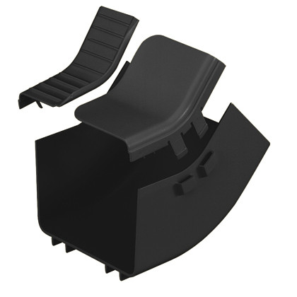Das innen abgewinkelte FiberRunner™ 6x4-Stück erstellt eine 45-Grad-Aufwärtsbiegung aus einer geraden horizontalen Führung. Verwendung mit äußerem vertikalem Verbindungsstück mit 45-Grad-Winkel FROV456X4LBL zur Änderung der Ebene einer geraden horizontalen Führung.