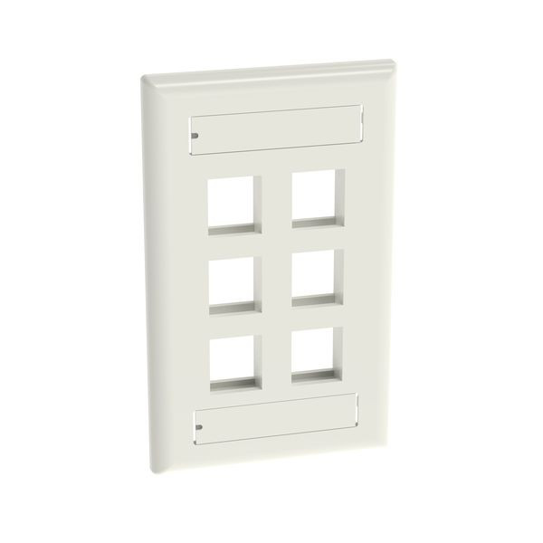 Vertikale NetKey-Geräteblende, Ein-Band, für eine bündige Montage, geeignet für sechs Keystone-Module, inklusive Etikett und Etikett-Abdeckung. Cremeweiß