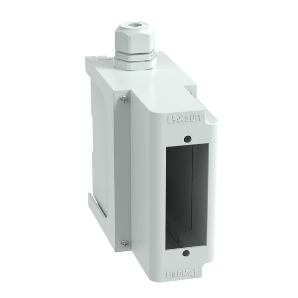 Das IndustrialNet™ DIN-Schienen Glasfaser-Patchpanel bietet Faserschutz für angeschl. Verteilerk. Es lässt sich auf einer 35-mm-Standard-DIN-Schiene mont. und mit verstellb. Verschlüssen just., die eine Mont. auf einer ebenen Oberfl. erm. Dieses DIN-Schienen-Montagegeh. beinh. eine PG21 Kabeleinführungsdurchf., die zwei Einsätze zur Verw. mit einer Vielz. von Glasfaserkabeln sowie 6-32 x 3/8“ Kreuzschlitzschr. zur Mont. der Gerätebl. an dem Patchpanel beinh. Zur Verw. mit FAPs und OptiCom® Kass.