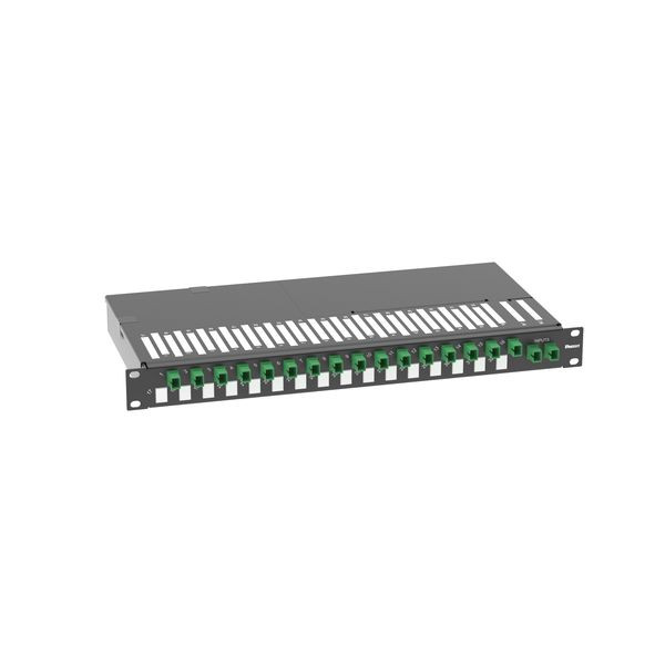 Optische Verteilerkassette; 2x16-Verteilung; doppelte SC/APC-Eingänge; 16 SC/APC-Ausgänge; 19"-Rackmontage; SPS