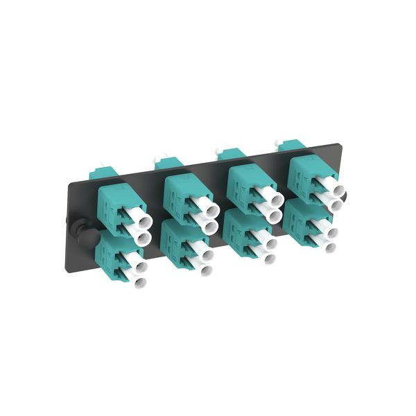 Das LC-Glasfaser-Adapterpanel ist OM3/OM4 und mit acht LC-Duplex-Singlemode-Glasfaseradaptern ausgestattet. Es ist Aqua mit Zirkonia-Teilhüllen.