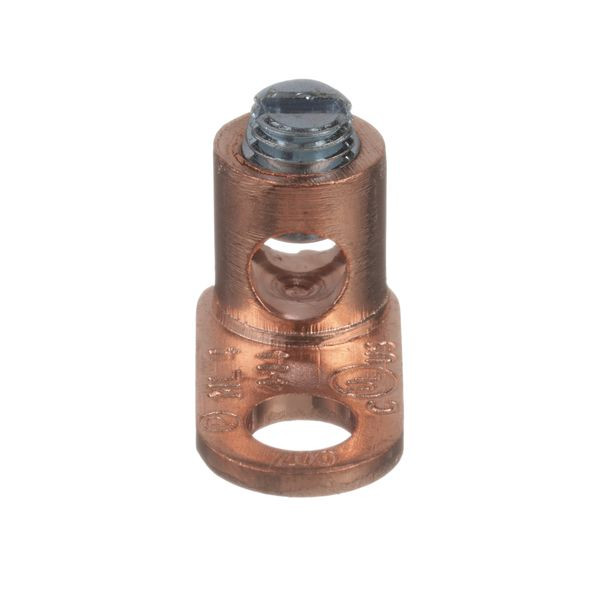 Ein Loch, Kupfer, Einertrommelkabelschuh, gerade Zunge, Nr. 14 SOL – Nr. 4 STR, 1/4 (6,4 mm) Schraubloch.