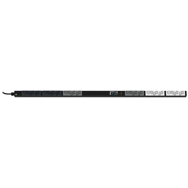Die überwachte und geschaltete SmartZone™ G5 PDU verfügt über (30) C13- und (6) C19-Steckdosen. Dabei handelt es sich um eine Dreiphasen-PDU 16 A, 400 V mit einem IEC 60309 3P+N+E 6h 32A (IP44) Eingangsstecker und einem 10 Fuß (3 m) langen Stromkabel. Die PDU ist schwarz.