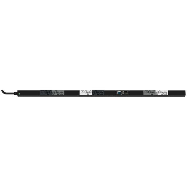 Die überwachte und geschaltete SmartZone™ G5 PDU verfügt über (18) C13- und (6) C19-Steckdosen. Dabei handelt es sich um eine Dreiphasen-PDU 16 A, 400 V mit einem IEC 60309 3P+N+E 6h 32A (IP44) Eingangsstecker und einem 10 Fuß (3 m) langen Stromkabel. Die PDU ist schwarz.