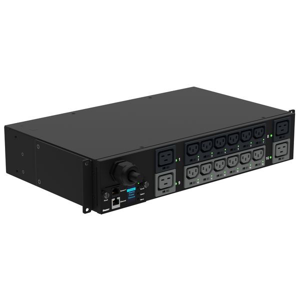 Die überwachte und geschaltete SmartZone™ G5 PDU verfügt über (12) C13- und (4) C19-Steckdosen. Dabei handelt es sich um eine Einphasen-PDU 32 A, 230 V mit einem IEC 60309 2P+E 6h 32A (IP44) Eingangsstecker und einem 10 Fuß (3 m) langen Stromkabel. Die PDU ist schwarz.