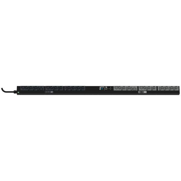 Die überwachte und geschaltete SmartZone™ G5 PDU verfügt über (38) C13- und (6) C19-Steckdosen. Dabei handelt es sich um eine Einphasen-PDU 32 A, 230 V mit einem IEC 60309 2P+E 6h 32A (IP44) Eingangsstecker und einem 10 Fuß (3 m) langen Stromkabel. Die PDU ist schwarz.