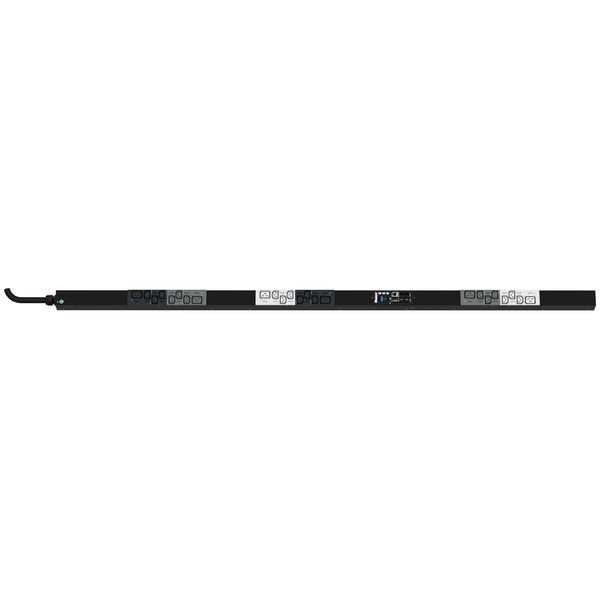 Die pro Steckdose überwachte und geschaltete SmartZone™ G5 PDU verfügt über (18) C13- und (6) C19-Steckdosen. Dabei handelt es sich um eine Dreiphasen-PDU 16 A, 400 V mit einem IEC 60309 3P+N+E 6h 32A (IP44) Eingangsstecker und einem 10 Fuß (3 m) langen Stromkabel. Die PDU ist schwarz.