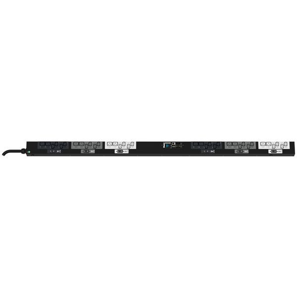 Die pro Steckdose überwachte und geschaltete SmartZone™ G5 PDU verfügt über (24) C13- und (12) C19-Steckdosen. Dabei handelt es sich um eine Dreiphasen-PDU 32 A, 400 V mit einem IEC 60309 3P+N+E 6h 32A (IP44) Eingangsstecker und einem 10 Fuß (3 m) langen Stromkabel. Die PDU ist schwarz.