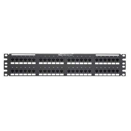 Flaches DataPatch Auflege-Patchpanel der Kategorie 5e mit 48 Ports in Schwarz. 2RU.