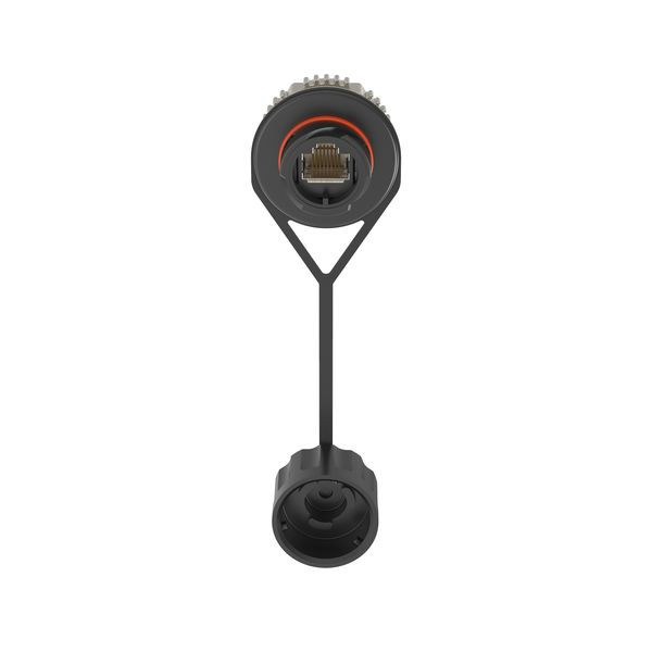 Die RJ-45-Buchse und -Stecker des abgeschirmten Kopplers der Kategorie 5e mit Trennwand nutzen eine IP67-Dichtung und schützen vor Staub und dem vorübergehendem Eintauchen in Wasser. Abschluss an einem 4-paarigen Twisted-Pair-Kabel 24 AWG, 100 Ohm, kommt ohne Auflegewerkzeug aus. Die Schutzkappe schützt den Steckverbinder und Stecker im nicht verbundenen Zustand nach IP67. Der abgeschirmte Koppler mit Trennwand ist schwarz.