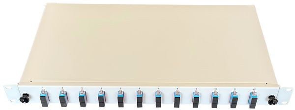 19" Spleissbox Singlemode mit Frontblende und montierten Kupplungen mit Keramikhülsen, ausziehbar
