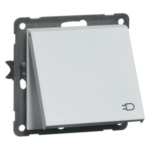 | Kurzbeschreibung | Aura Steckdose mit Erdung, Steckkontakten und Kindersicherung, Klappdeckel, Aluminium |