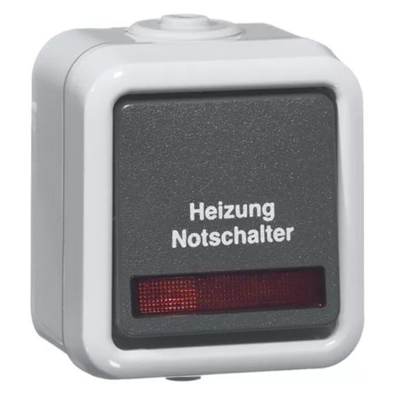 | Kurzbeschreibung | Aufputz-Zentralheizungs-Hauptschalter, spritzwassergeschützt, IP54, universell 1-polig Hotel, Kontrollleuchte |