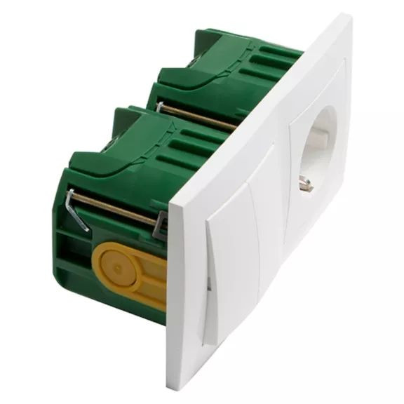 | Kurzbeschreibung | Badora Socketline Wippschalter 1-polig, SCHUKO Wandsteckdose, Schraubkontakte, 2-polig, living white |
